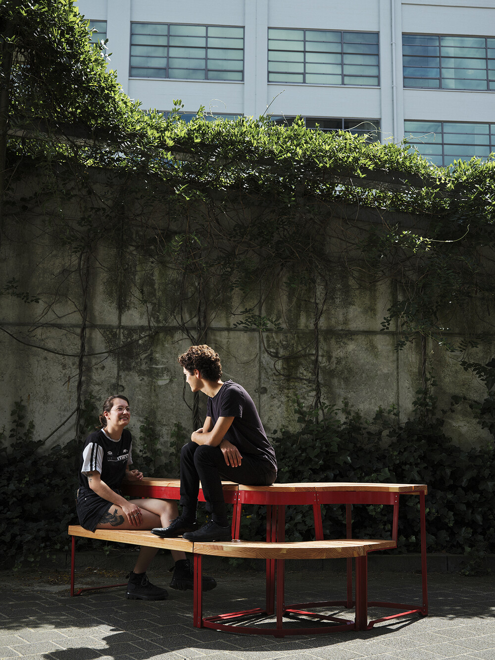 This modular street furniture system is designed for dynamic public spaces. Developed through close research with various municipalities, the system accommodates society’s changing needs over time, with an eye for production and maintenance. Each of the three elements, one straight and two curved, can be used as both a stand-alone bench or picnic table, or they can be combined into various configurations that stimulate interaction. On normal days, ‘Urbench’ can function as basic street furniture. But when needed, the municipality or organisers can unlock the elements and create their preferred layout. Afterwards, the elements can simply be rearranged again and locked to meet society's current needs.