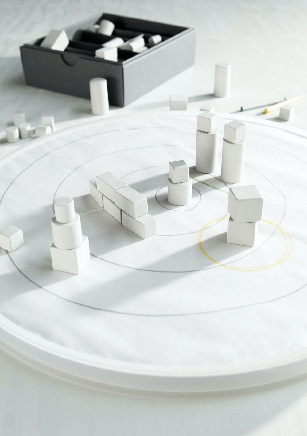 In primary care psychology, the therapist and client only have a short number of sessions to determine the problem and work on a solution. ‘Tools for Therapy’ is a communication toolkit to support that process. This basic set of ceramic plaster cubes and cylinders helps to visualise feelings when words are not enough. Arranging the neutral objects on the accompanying round board makes it easier to explain a family setting or any other scenario. The crayons can add an extra layer with colours and connections. When your mind is going around in circles, these tools can help to get a grip and untangle complex thoughts, feelings and situations.