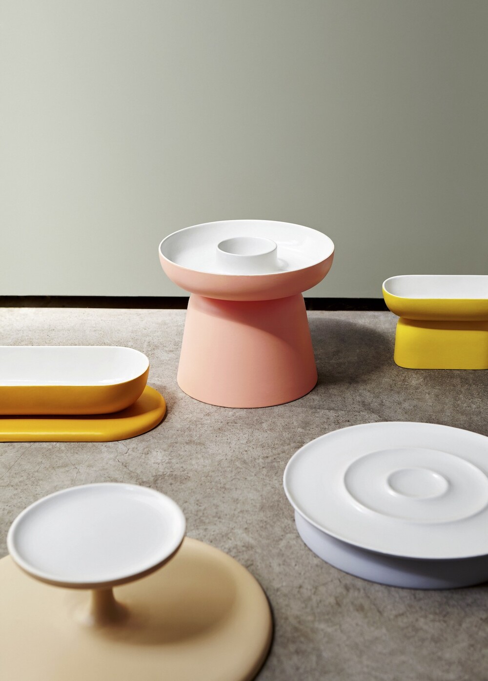 WHAT Ceramic serving dishes that can be used on both sides for extra flexibility in presenting different foods. WHY Sharing food together is a moment of celebration. This series honours the beauty of this moment, combining appeal with extra functionality. Being able to use both sides of the dishes saves cupboard space, as every piece has multiple possibilities. HOW Anna Ballmann turns tableware design on its head: by using the form of both the top and bottom of a dish, she creates two presentation surfaces where there is usually only one.